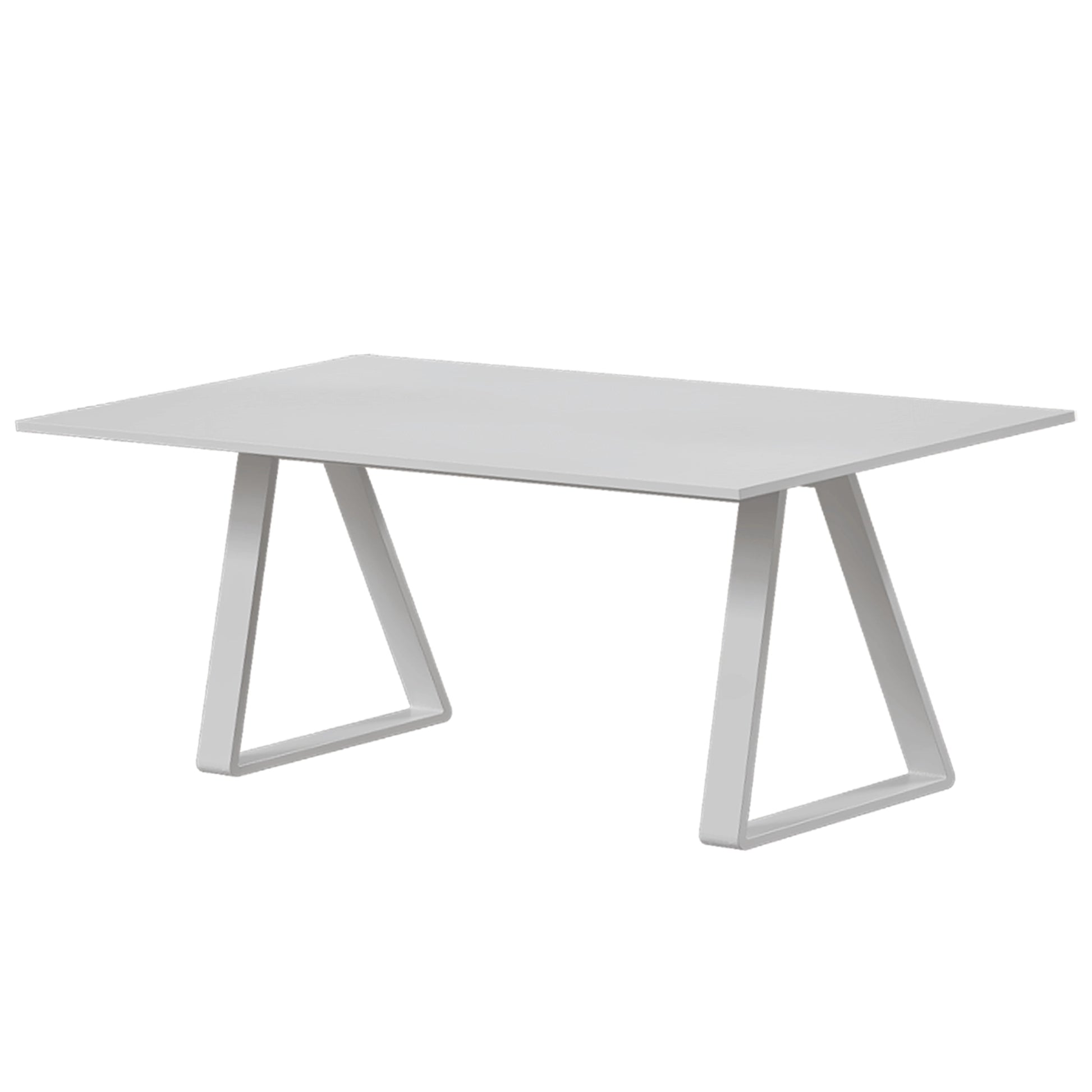 Ausführung: Tischplatte Laminat weiss, Untergestell Metall weiss lackiert.